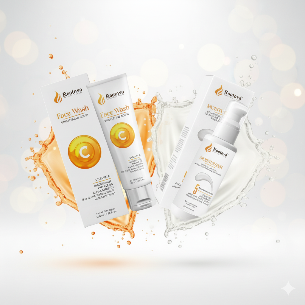 Start your routine with the revitalizing Rootovo Brightening Boost Vitamin C Face Wash (100ml). Designed to give your skin a fresh, luminous start, this cleanser gently removes all traces of the day while active ingredients like Alpha Arbutin and Niacinamide work to fade dark spots and revive tired skin.